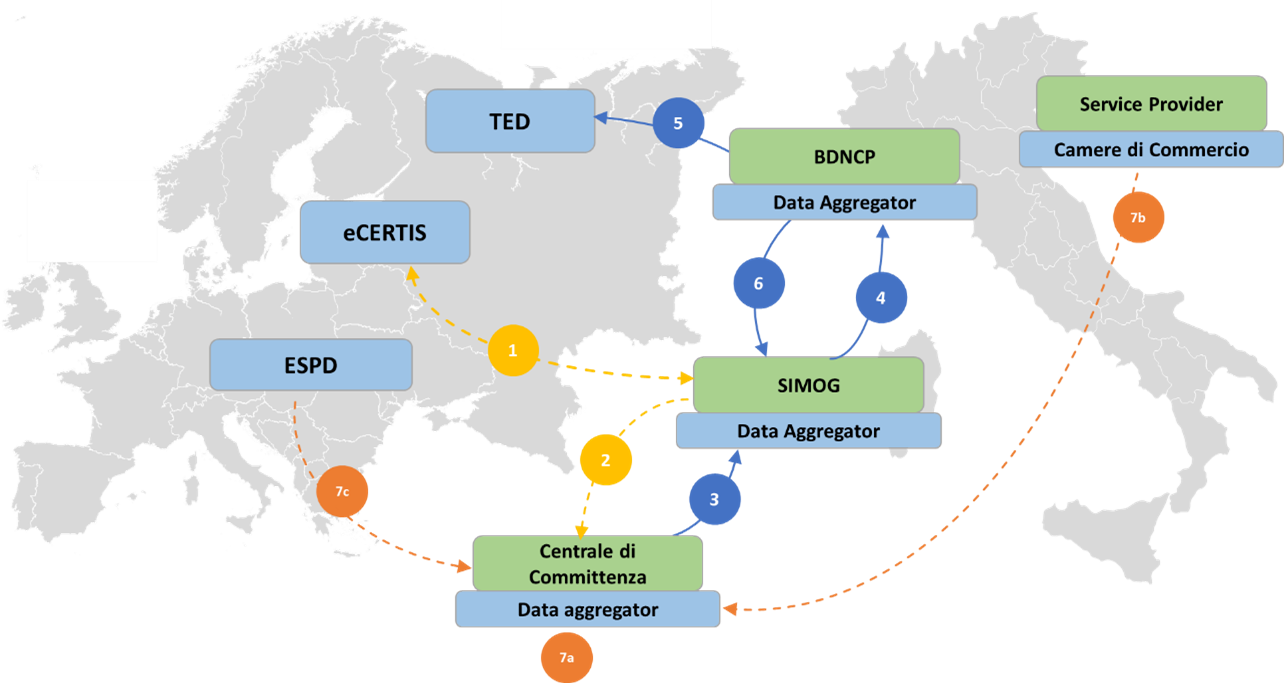 - SIMOG valida i dati e li trasmette alla BDNCP che opera come eSender nazionale.